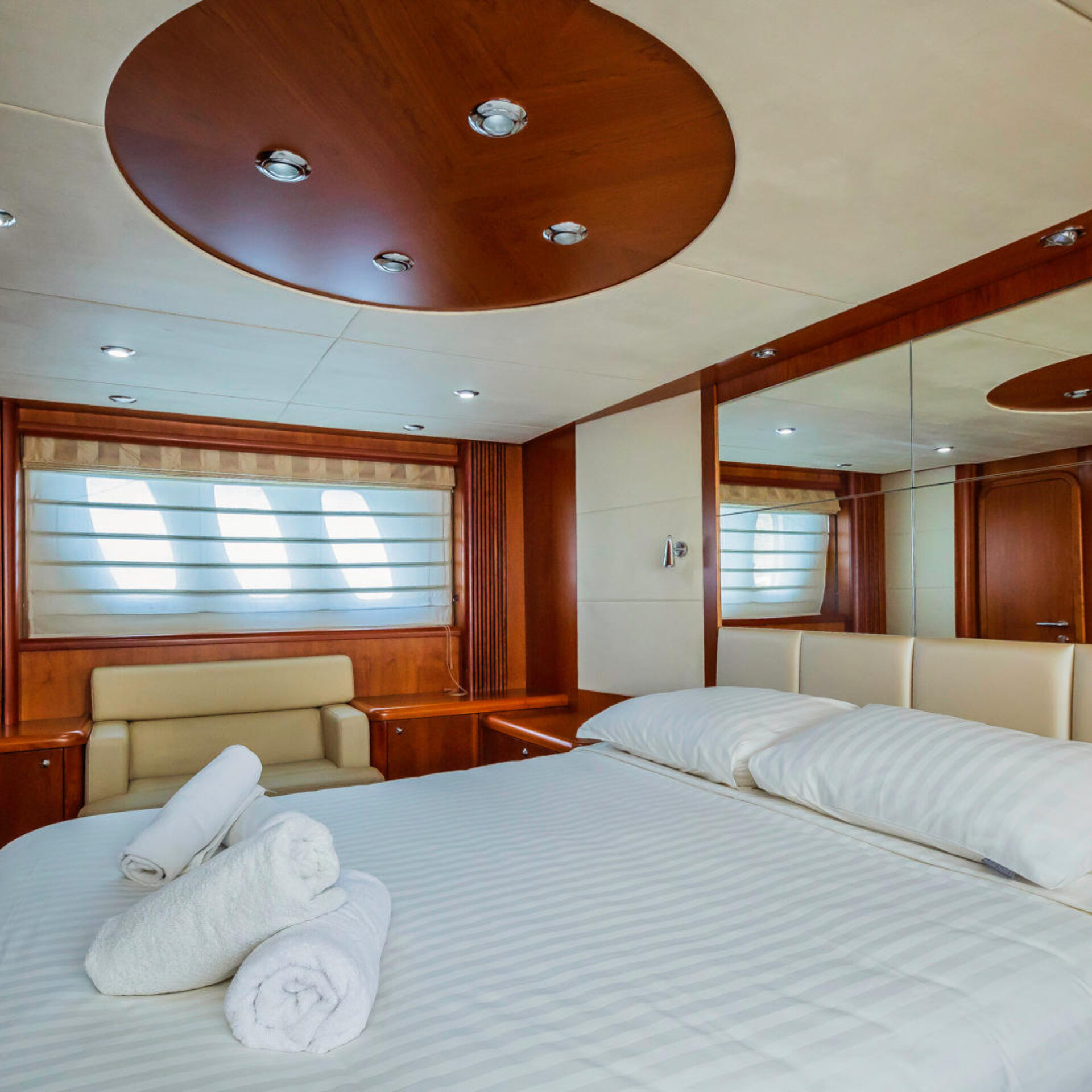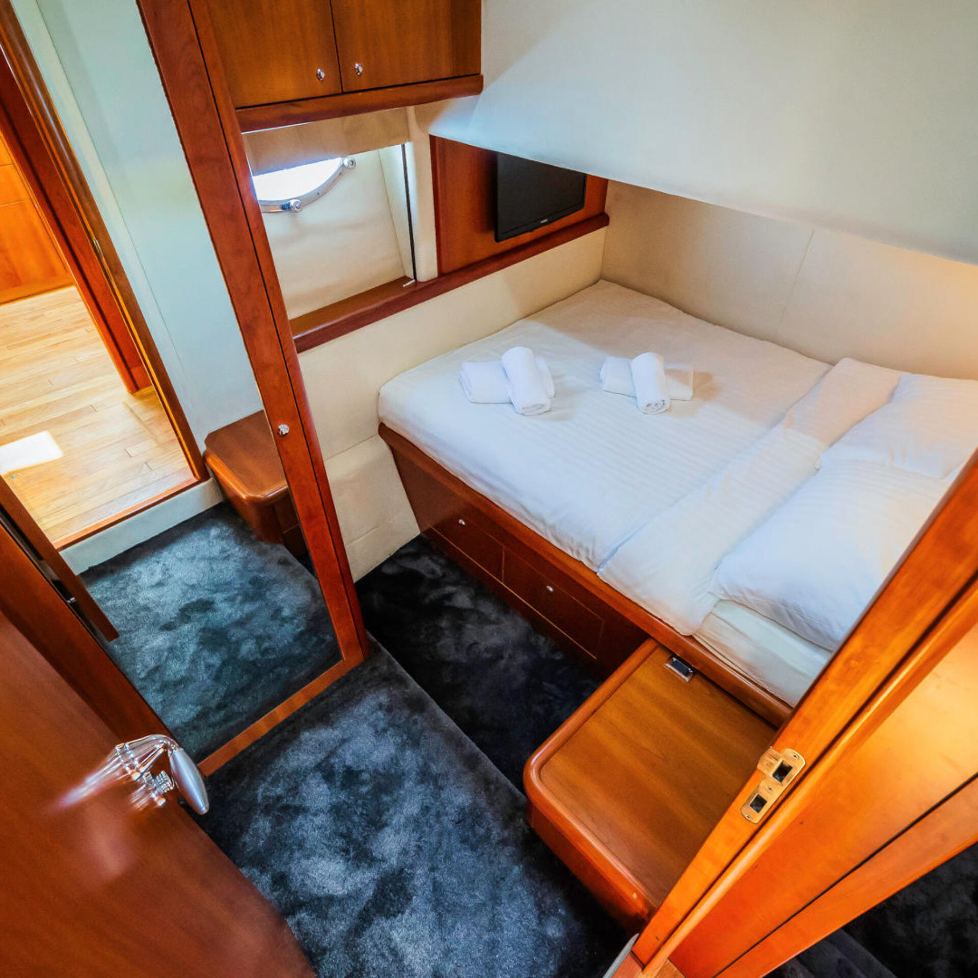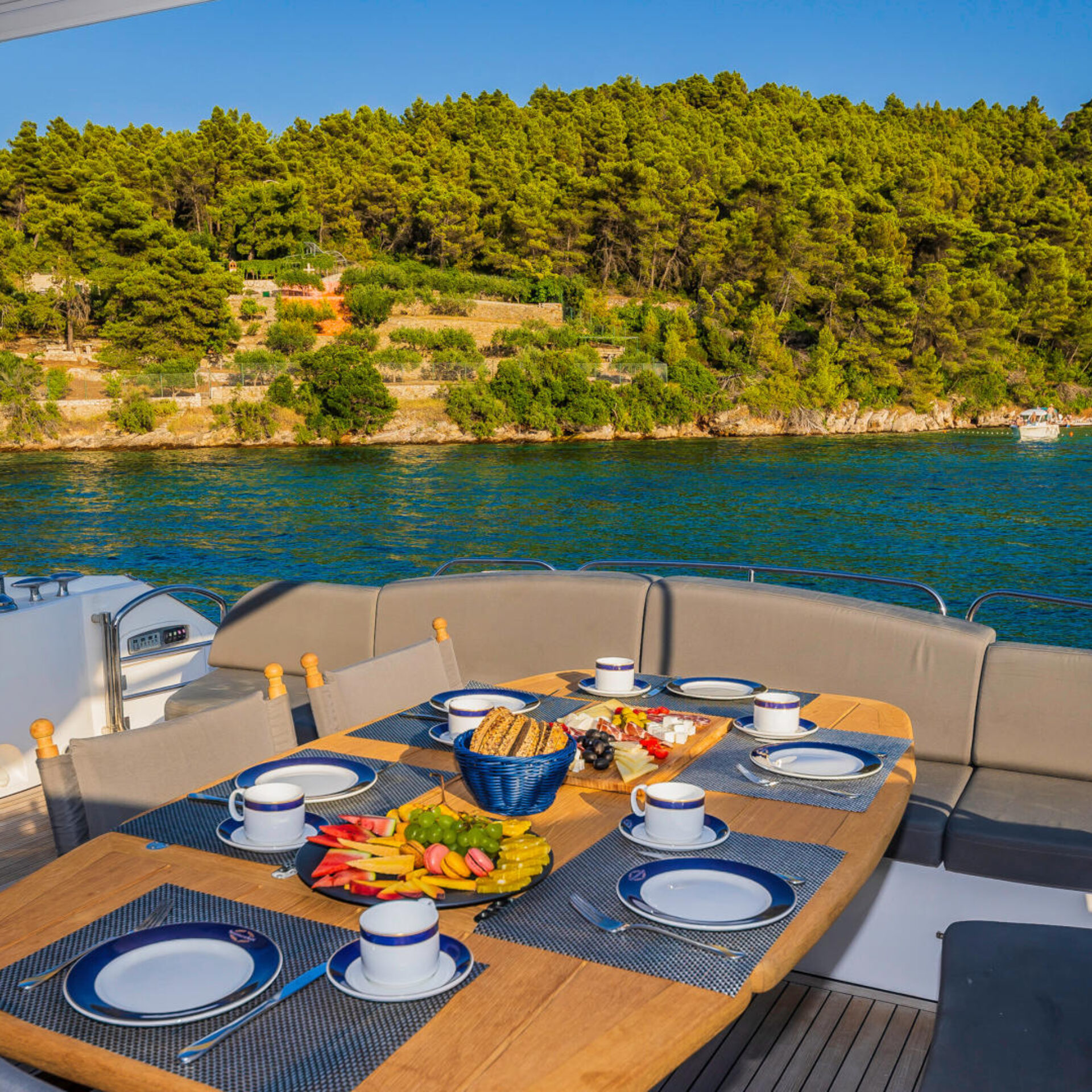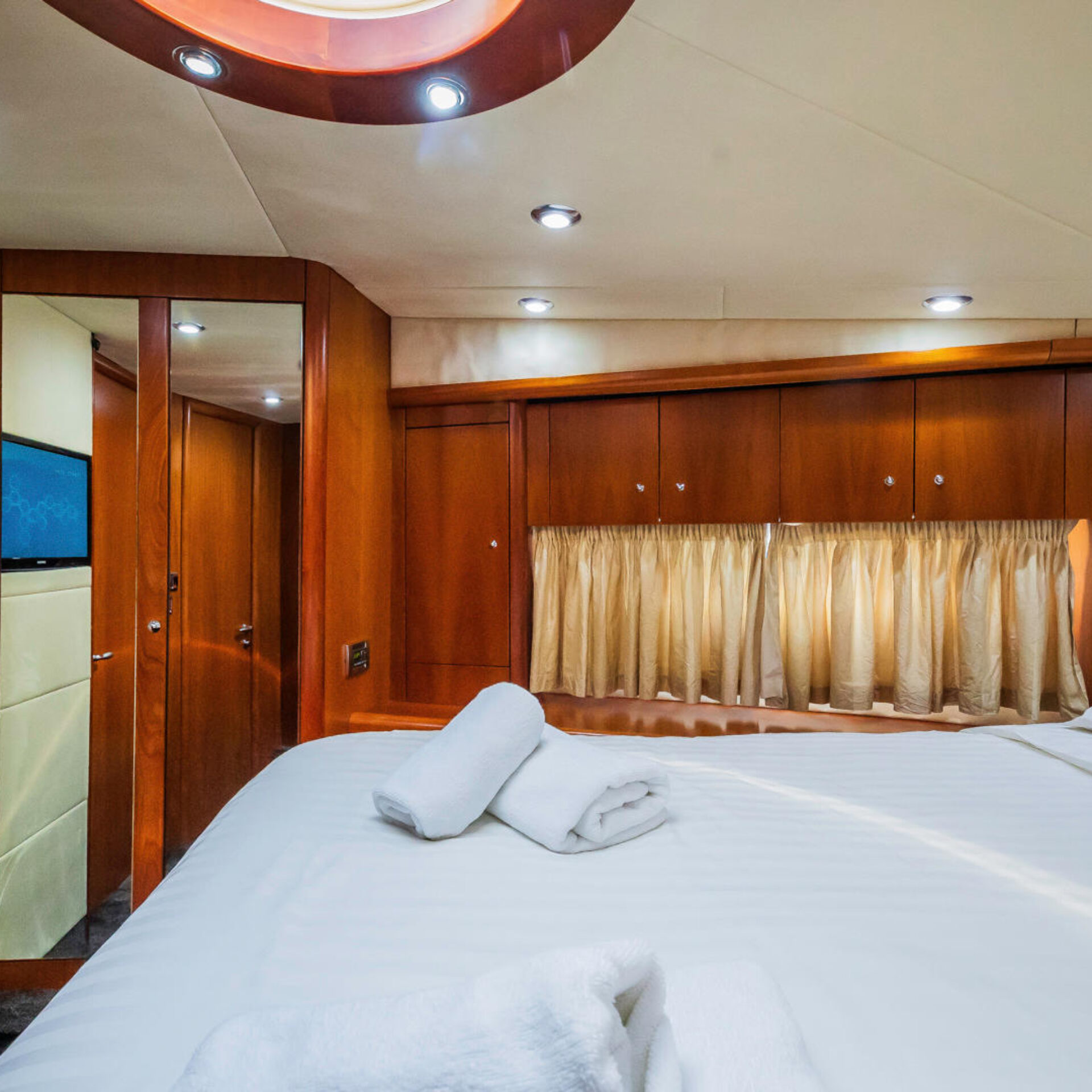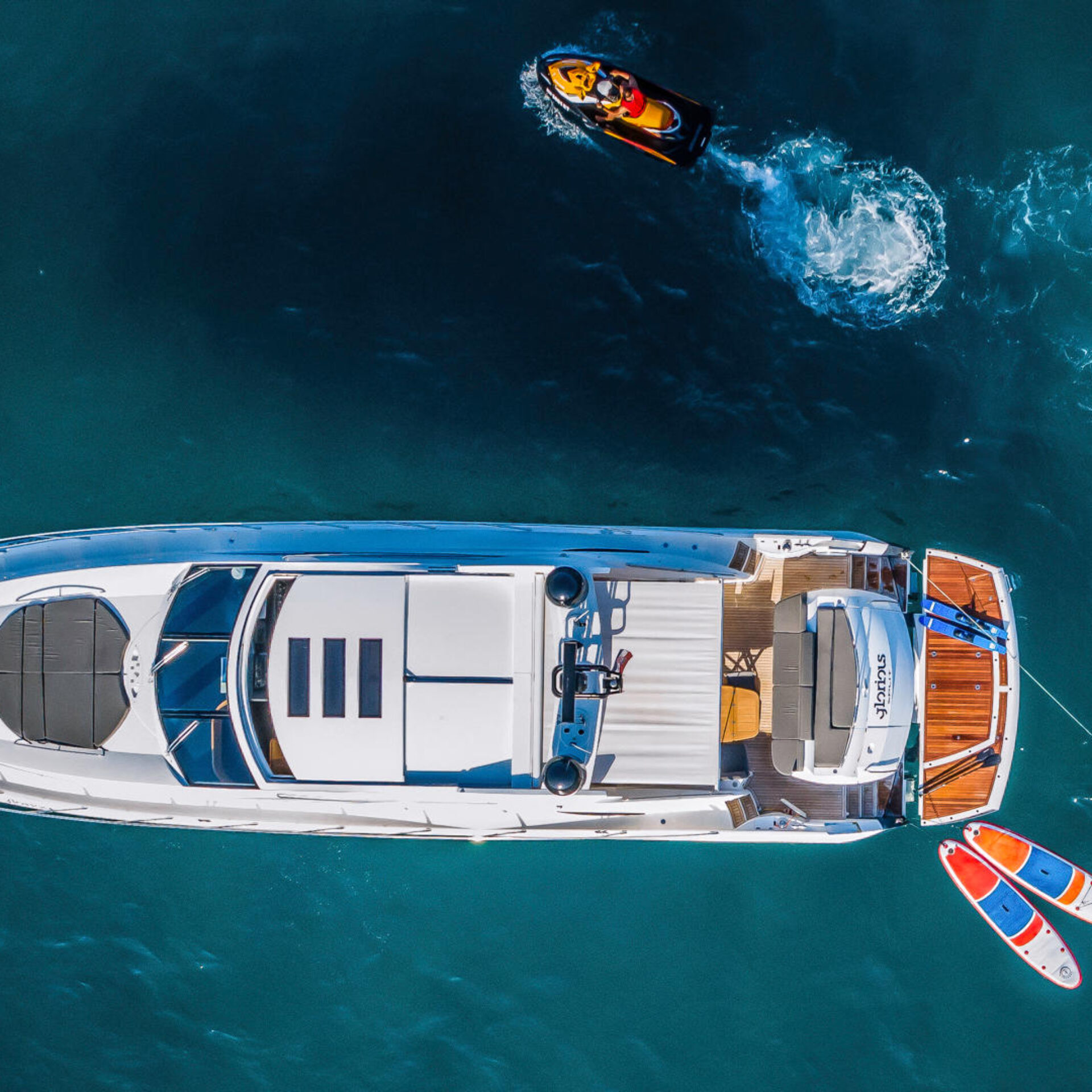 Na luxusní jachtě GLORIOUS může až 8 hostů zažít vzrušující zážitek z pronájmu této rychlé jachty. Nedávná přestavba byla provedena s ohledem na nájemce s čistým a svěžím interiérem s novým čalouněním. Pevná střecha kokpitu po otevření umožňuje proudění světla a vzduchu do salonu a je skvělým prvkem. Vedle kuchyňky jsou 3 klimatizované kajuty s přistýlkou, kterou lze přeměnit na manželskou postel. Všechny kajuty jsou vybaveny LCD TV, SAT TV, zvukovým systémem Bose, DVD, WiFi internetem přes 3G/4G. Venkovní stolování je možné v zadním kokpitu s možností grilování a prostor pro opalování se nachází na přídi. Ideální, pokud kotvíte nebo jste v přístavu. K dispozici je také řada hraček pro vodní sporty, například vodní skútr Sea Doo. S maximální rychlostí 36 uzlů je ideální pro dobrodružné hosty.