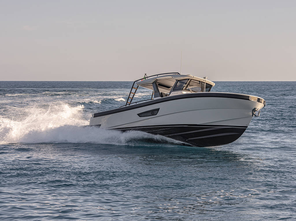 The layout provides for the use of the entire width to create the owner's cabin with a king-size double bed in the middle of the boat and a dining area in the bow that can accommodate up to six people and a bed that can be converted into a double bed.