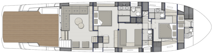 A BGX73 kifinomult és forradalmi külső kialakítása és áttekinthető elrendezése tökéletesen ötvözi az elegáns vonalakat és a nagy élettereket. A tulajdonos kabinjának központi szerepe ebben a modellben fejeződik ki. Valójában központi helyen található, és hozzáférést biztosít a nappalihoz és egy privát területhez, amely szükség esetén vendégszobaként is használható.