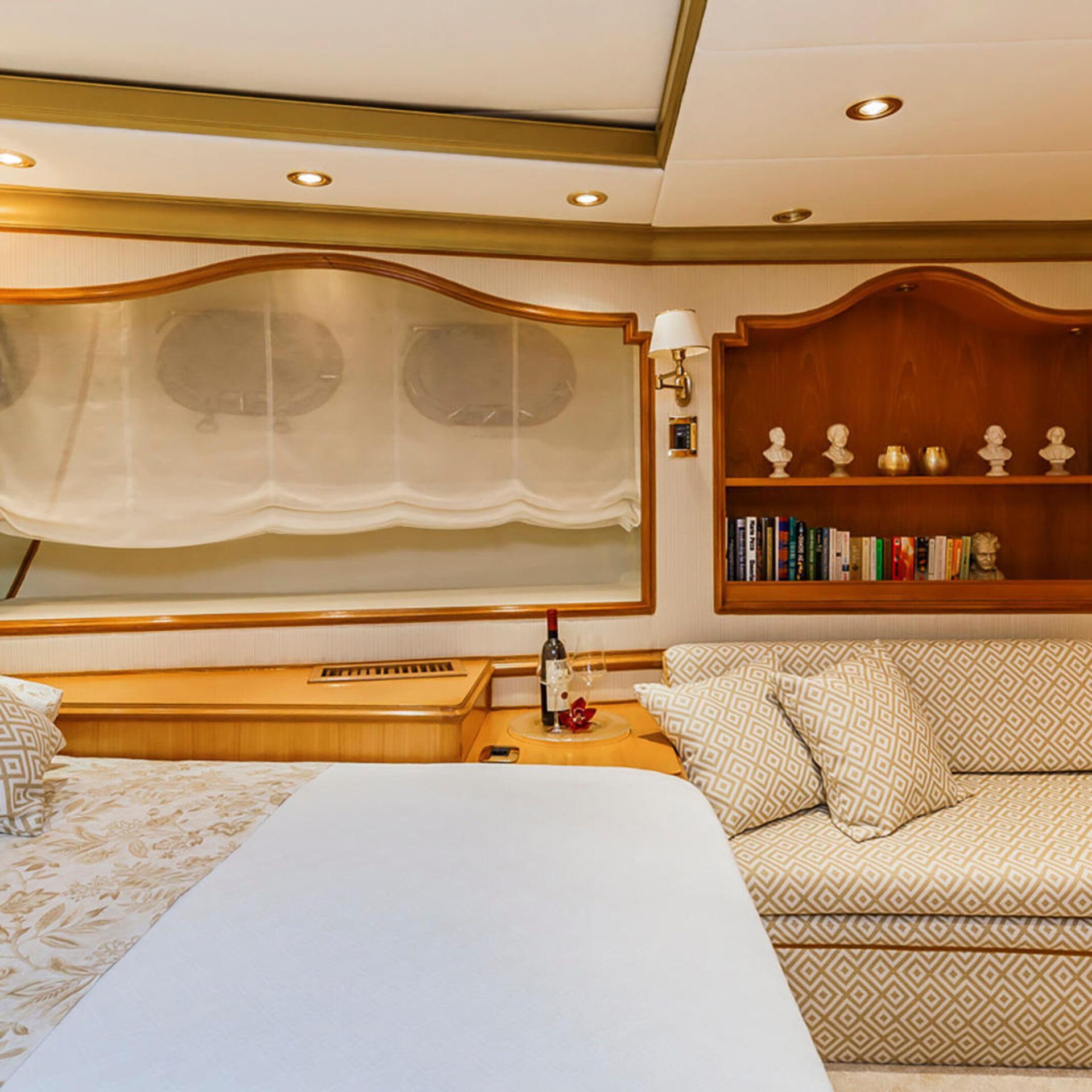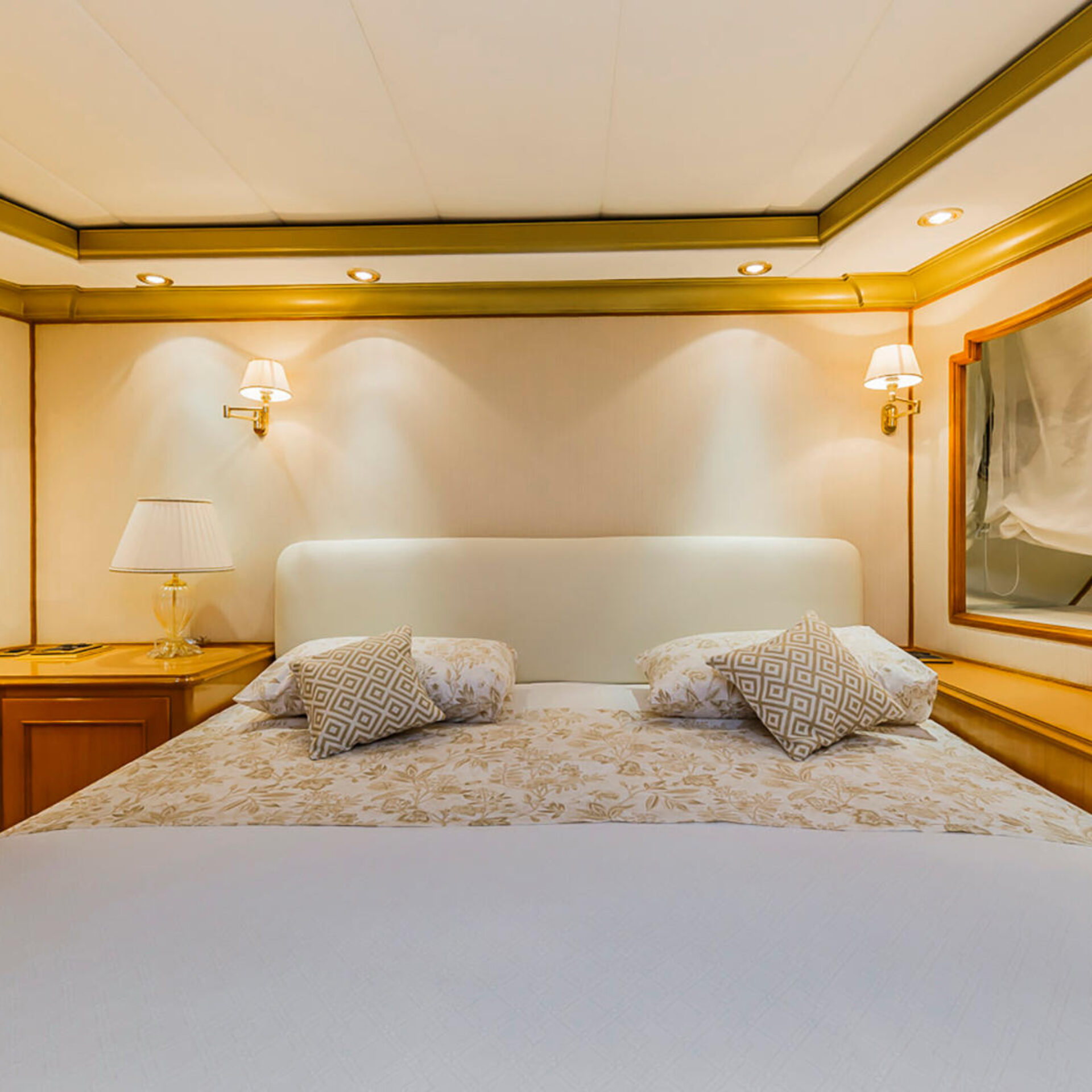 Teljesen testre szabott Benetti 35m TO JE TO makulátlan állapotban van, és idén télen, 2020-ban volt a refit. A jacht kifinomult tervezése és mérnöki munkája a Benetti munkája, és a fényűző belső terét Zuretti, Mauro Zanon tervezte. Ez a klasszikus luxus 3 fedélzetű jacht belseje úgy lett kialakítva, hogy 4 kabinban akár 8 vendég kényelmesen elférjen. A fedélzeten 4 kabinban akár 5 fős személyzetet is képes szállítani a nyugodt luxusjacht-élmény biztosítása érdekében. Van egy kényelmes pihenő és megfigyelő terület, ahol pihenhet, vagy élvezheti a pillanatokat a családjával, barátaival.