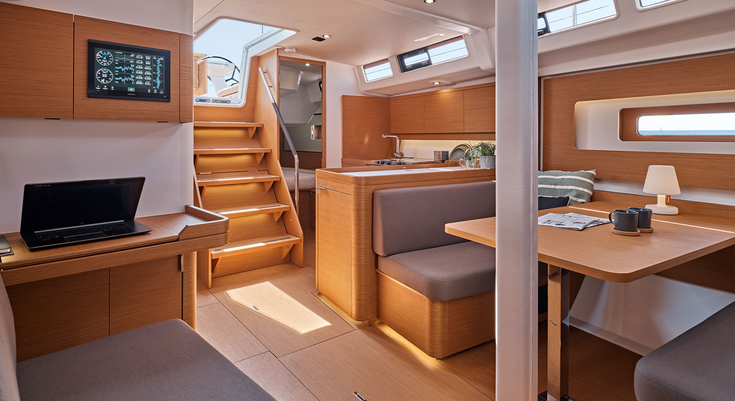 Mit der First 44 bietet BENETEAU das Edelste aus den Kategorien Racer/Cruiser: ein elegantes, komfortables Segelboot mit Fahreigenschaften, die einfach nur Spaß machen. Die großzügige Besegelung macht die Beneteau First 44 zu einem lebendigen und leistungsstarken Schiff unter jeglichen Bedingungen.