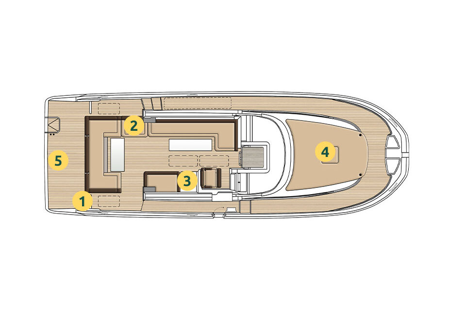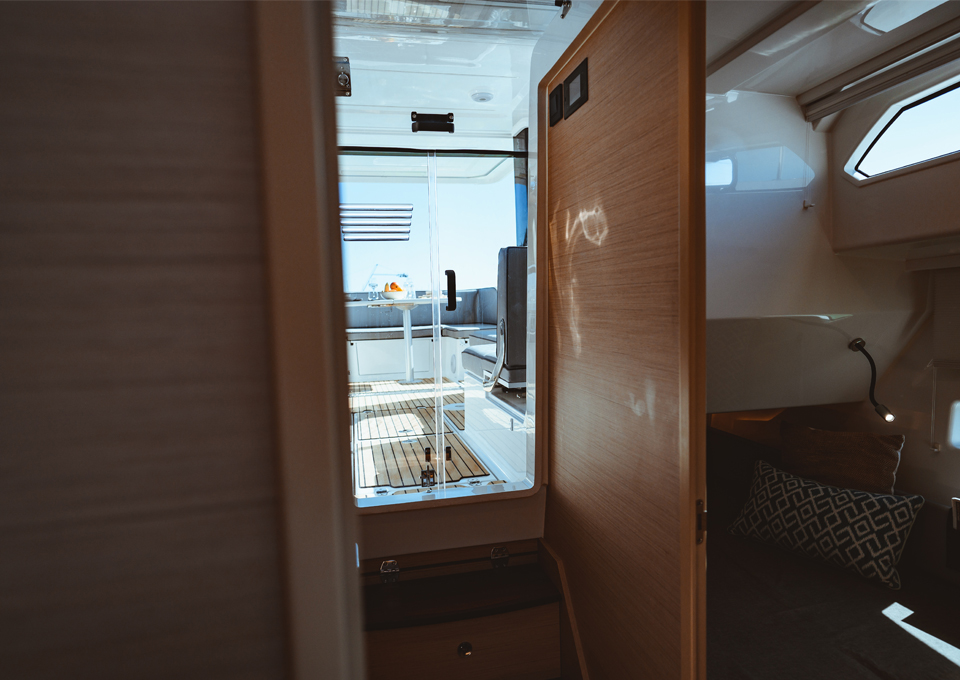 An Bord steht die Zeit still und es herrscht wohltuende Ruhe. Optimierte Wege und eine Plattform mit einer einzigen Ebene ermöglichen leichte und flüssige Bewegungen an Bord, die zu Entspannung und Gelassenheit einladen. Die Außenabdeckung der Yacht bietet einen erweiterten Schutz, während Sie gleichzeitig mit den natürlichen Elementen verbunden bleiben.