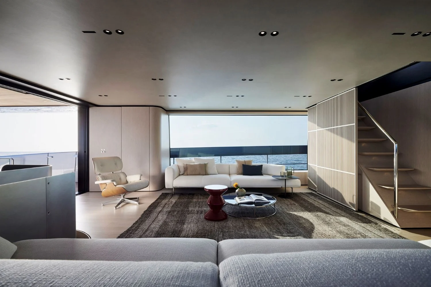 Sanlorenzo SX100 ist eine Crossover-Yacht, bei der Räume und Funktionen in großen, offenen Bereichen in engem Kontakt mit dem Meer zusammenkommen.